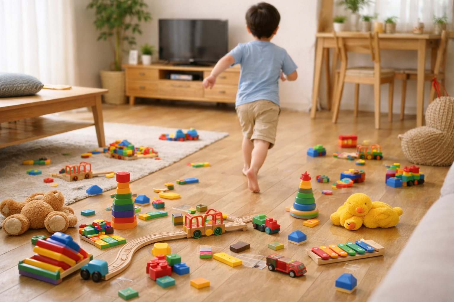 さらに、おもちゃが多いと片付けも大変になり、「出しっぱなし→散らかる→遊ばない」という悪循環にもつながりやすくなります。