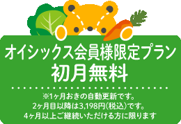 定期購入(オイシックスベビープラン)初月無料、2ヶ月目以降は毎月3,198円、4ヶ月目までは解約できません。